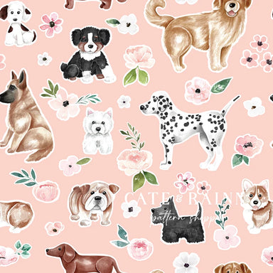 Dogs with Pink Flowers