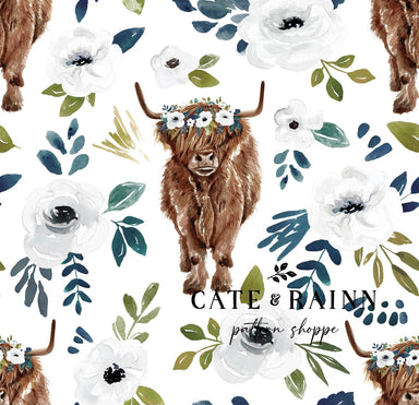 Navy floral highland cow