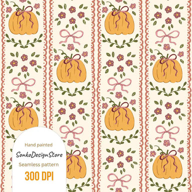 Cottagecore Floral Pumpkin Stripe